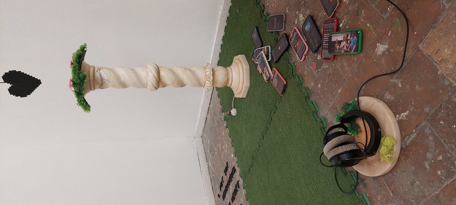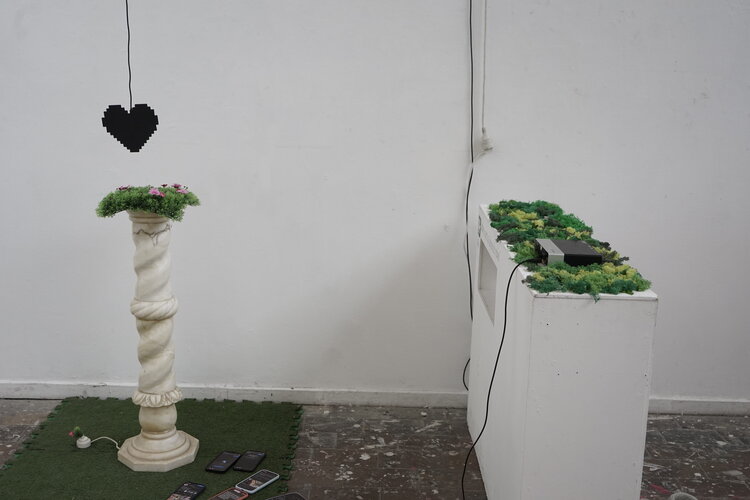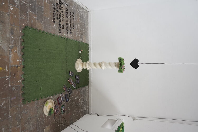 Some have mysteriously abandoned their channels. One is in prison for horrific crimes, another has become a mother. Most have died, tragically or naturally. What all these youtubers had in common was that they all produced music, often covers, sometimes original compositions. They were all singers. Inspired by the pedestals found in video games, which give the player one extra life, this installation invites viewers to move their black heart through the space, so that the voices of the dead and the departed blend together in new and unexpected ways.