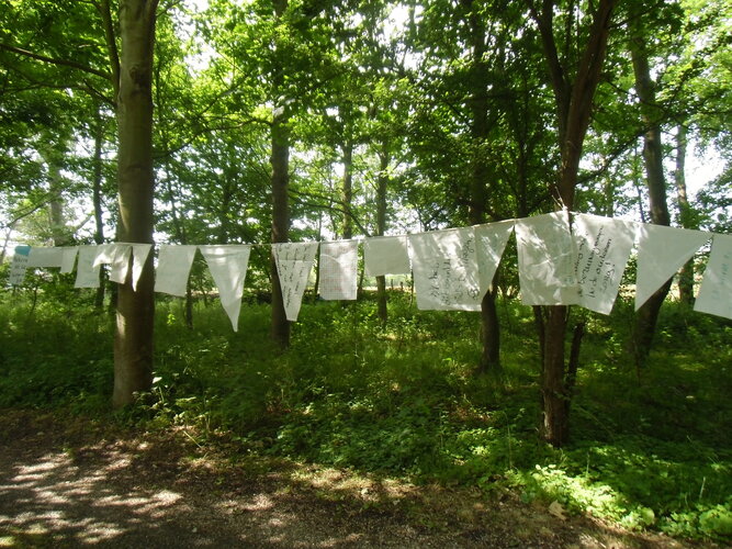 Ontstaan in de trein naar Maastricht. Een echtpaar waarvan de vrouw de hele treinreis zat te klagen over de kinderen, kleinkinderen, ze had een kaartje gekocht voor de trein de conducteur kwam niet eens enz. De man reageerde alleen nog maar met hum, ja, ja. Het idee was geboren. Dit geklaag heb ik uitgewerkt in een klaaglijn. Het is zo Hollands dat klagen, het is een gewoonte en niemand kijkt er van op. De mensen kunnen hun klachten schrijven op oude zeilen deze hang ik op aan een lange lijn. Vaak lokt de ene klacht de andere uit. Mensen gaan met elkaar een dialoog aan of die klacht nu wel zo gegrond is, zelf weten ze wel een betere of ze gaan oplossingen bedenken. De klager heeft zijn zegje gedaan en heeft zijn hart gelucht, ik hang het in de lucht.