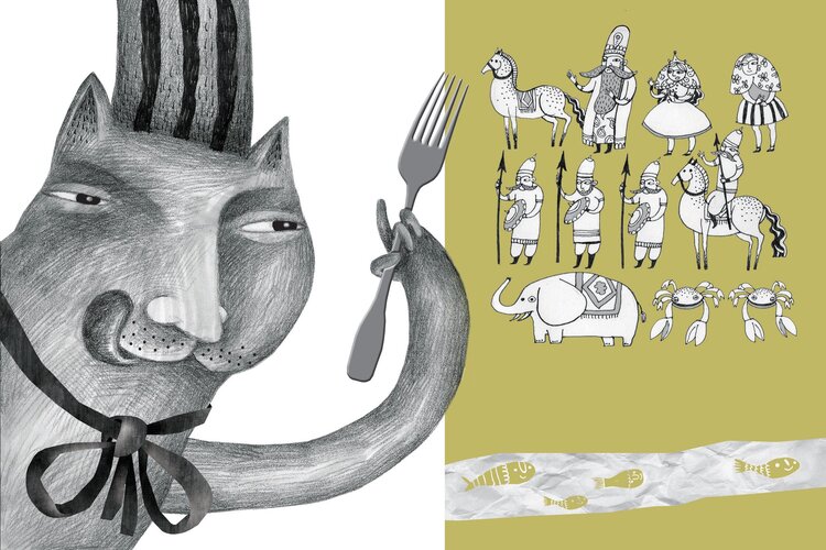 Some stories for theater, Mehr publication, 2023, mixed media and digital techniques, 45 x 21 cm.