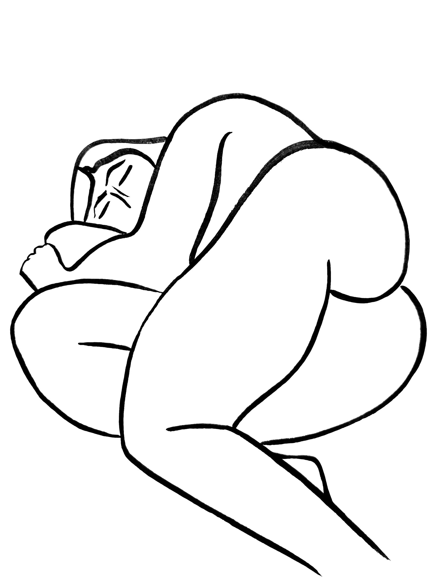 Minimalistische lijntekening met inktpenseel, naar levend model.