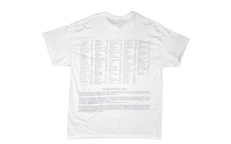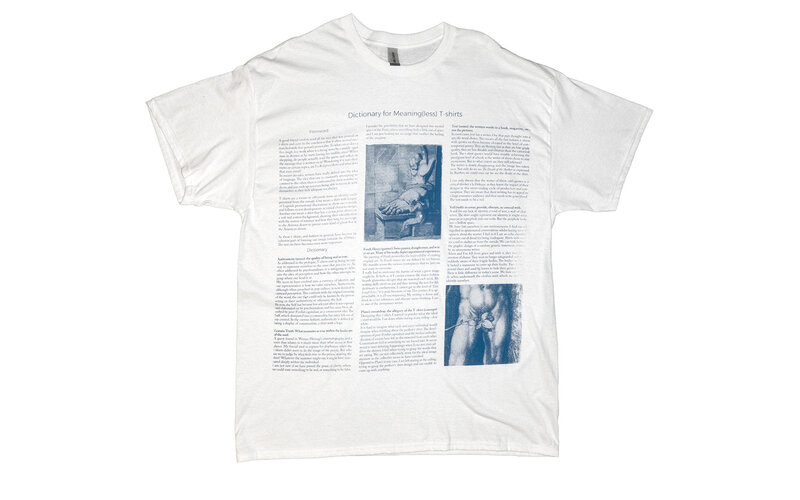 Tekst is overal aanwezig in onze omgeving en t-shirts met citaten zijn gericht op die gaze: de gaze van een breed publiek om massaconsumptie te ondersteunen. Dit shirt bestaat uit een gezeefdrukt essay over verschillende concepten: Authenticity, the quality of being Real and True; Ecstatic Truth; Henry Fuseli; Plato’s allegory of the t-shirt enzovoort. Dit gevolgd door een manifesto voor meer saaie t-shirts op de achterkant van het shirt.