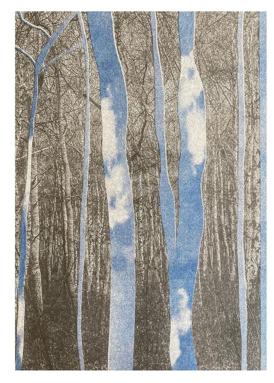 luchtbomen / 170g, black + blue riso, 285 x 200 mm.