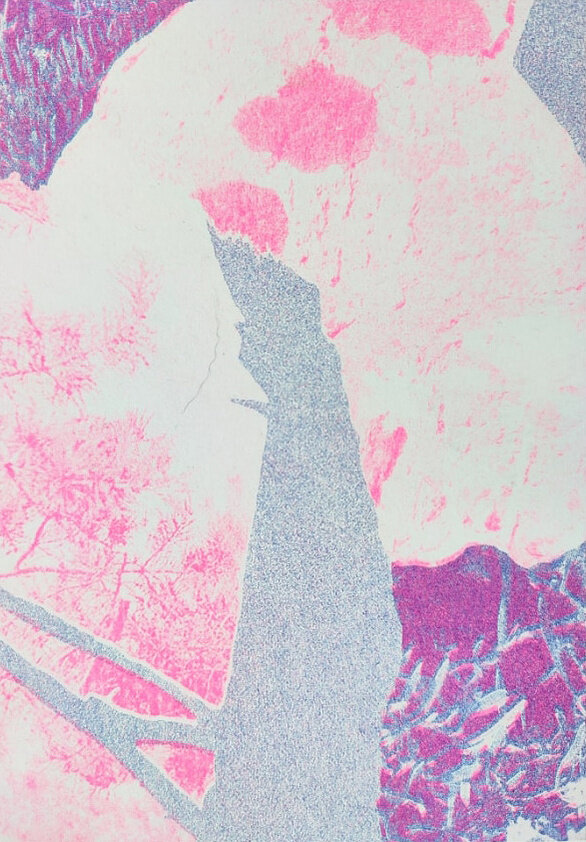 A riso post card for The Subterranean Kitchen Atelier, in fluo pink + medium blue.