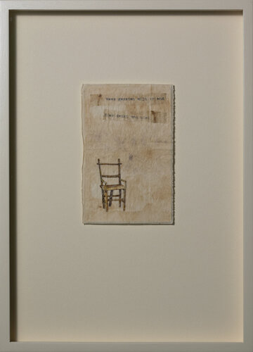 Gemengde techniek op een gebruikt theezakje | 14,6 x 9,7 cm | 36,3 x 26,3 cm incl. lijst Artglass AR 70