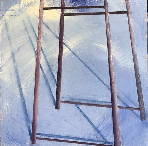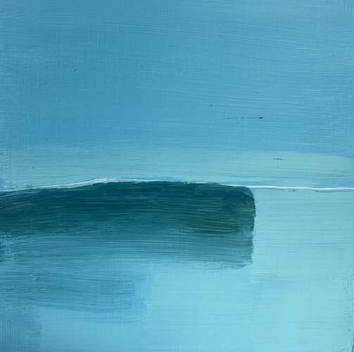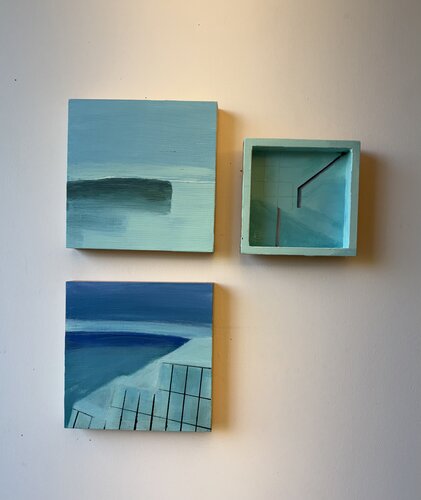 - 4. Strandschaduw: acrylverf op hout 20x20 cm. Organische gecombineerd met strakke lijnen