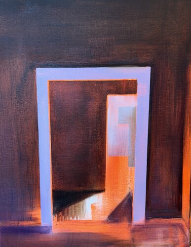 - 5. The passages. Achtergrond in acryl afgewerkt met olieverf. Werk gaat over de verschillende passage die je tegenkomt in het leven maar toch een hoopgevend lichtpunt in de verte. Afmetingen: 40x50cm.
