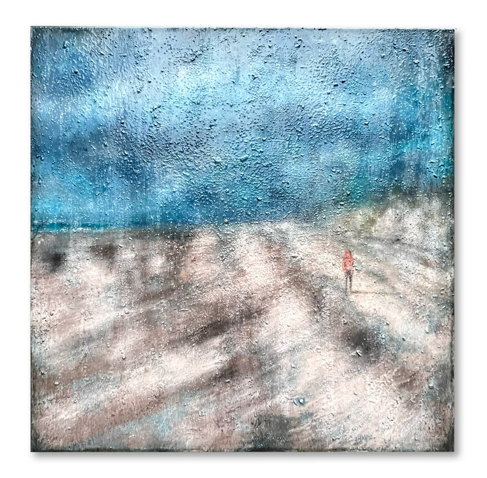 I have long been searching for a place where the dunes remain untouched, and where the beauty and force of the sea put us back into perspective. I spent an afternoon on the beach in Burgh-Haamstede and returned with the memories of the uneven textures of sand constantly carved by the wind, of heavy clouds that looked as they had already been painted, and the smell of iodine. Movement is everywhere at the beach. That continuous shifting, dissolving, and rebuilding mirrors my own process: a constant state of becoming, reshaping, and letting the work guide me as much as I guide it.