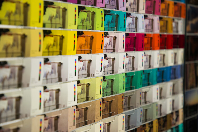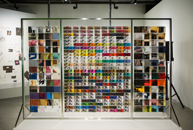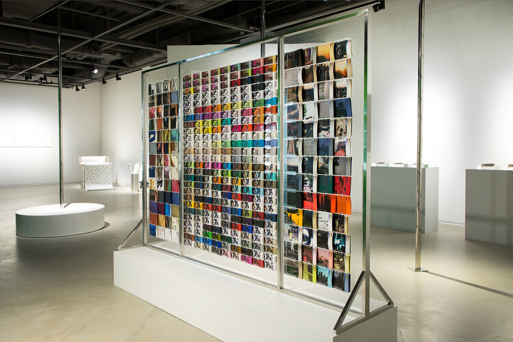 Printed images of nightclub offices were mounted on layered acrylic panels, referencing display systems used in hardware or interior stores. Like paint or carpet samples, each printed sheet could be removed, touched, and read, inviting the audience to physically navigate the fragmented surfaces of labor and nightlife.